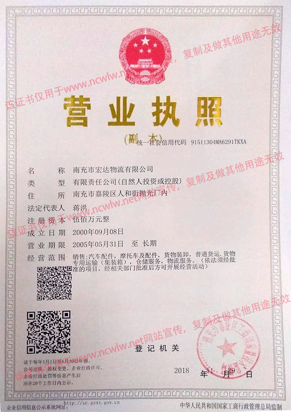 南充物流網(wǎng)(www.szqingsonghu.com) 南充市宏達物流有限公司營業(yè)執(zhí)照